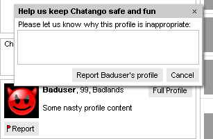 When enough people click on the Report Abuse button for a particular person, that person automatically gets restricted from private messaging others. Providing an abuse report when a user messages you will give Chatango the necessary technical information in case we need to restrict that user. You can also provide a comment when you submit an abuse report.